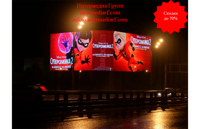 Уважаемые друзья, чтобы узнать цену именно Вашей рекламы на медиафасадах, просим написать на почту: info@intermediarf.com или позвонить: +7 (495) 369-53-61, 8 (800) 100-87-81. Наши менеджеры рассчитают стоимость размещения рекламы на медиафасадах с учетом скидки. Ждем обратной связи.