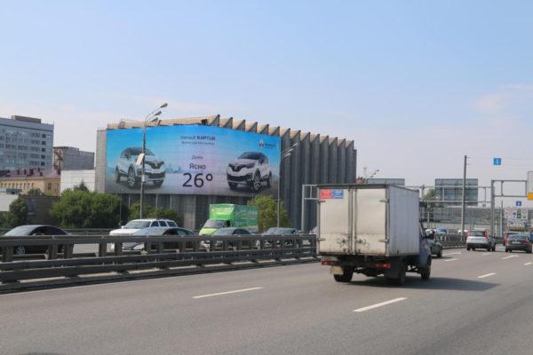 ЮВАО, Медиафасад г. Москва, ТТК, (пересечение с Энтузиастов ш.,д.5) На ТТК, угловой, два ракурса обзора. Напротив —зеркальная стена Размер: 75,2 х 20 м Площадь: 1504 кв. м.